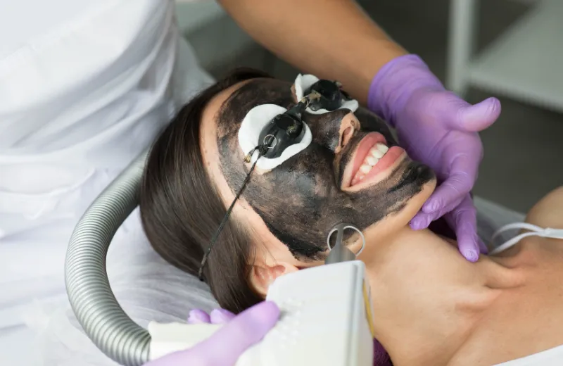 Podczas zabiegu na skórę aplikowana jest specjalna zawiesina z aktywnym węglem medycznym, która wnika głęboko w pory przyciągając toksyny, sebum i zanieczyszczenia. Następnie energia lasera działa selektywnie na cząsteczki węgla, powodując ich mikrowybuchy – to pozwala na precyzyjne oczyszczenie porów, usunięcie martwego naskórka, a także stymulację produkcji kolagenu i elastyny.