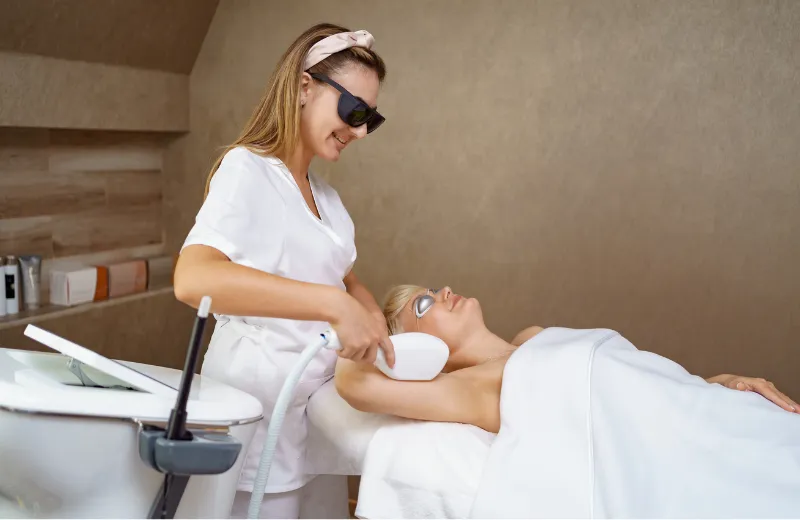 Nieablacyjny resurfacing ND:YAG – druga część zabiegu to działanie laserem ND:YAG o długości fali 1064nm, który dociera w głębsze warstwy skóry, pobudzając procesy regeneracyjne i przebudowę kolagenu – bez uszkodzenia naskórka.